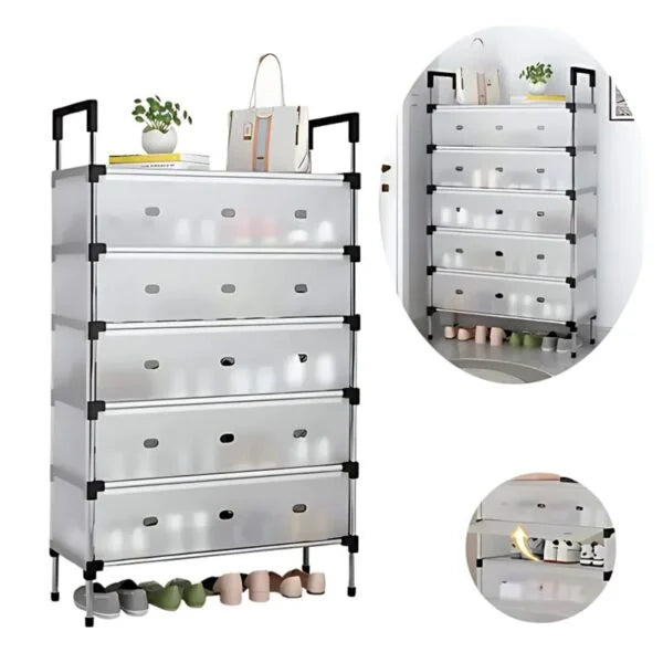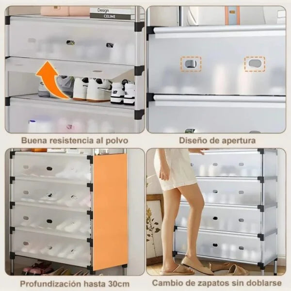 Estante Zapatero 6NOrganiza, protege y ahorra espacio con estiloMantén tu calzado impecable y siempre a la mano con este práctico zapatero de 6 niveles. Su diseño modular permite ajustar la altura de los compartimentos, adaptándose a todo tipo de calzado: desde sandalias delicadas hasta botas altas. ✔ Fácil de montar y desmontar ✔ Versátil: también sirve para ropa, juguetes y más ✔ Diseño moderno y funcional que combina con cualquier hogar🌟 ¿Por qué elegirlo? Capacidad amplia: hasta 20 pares de zapatos. Protección total: antipolvo y prueba de humedad. Ahorro de espacio: diseño compacto y vertical.